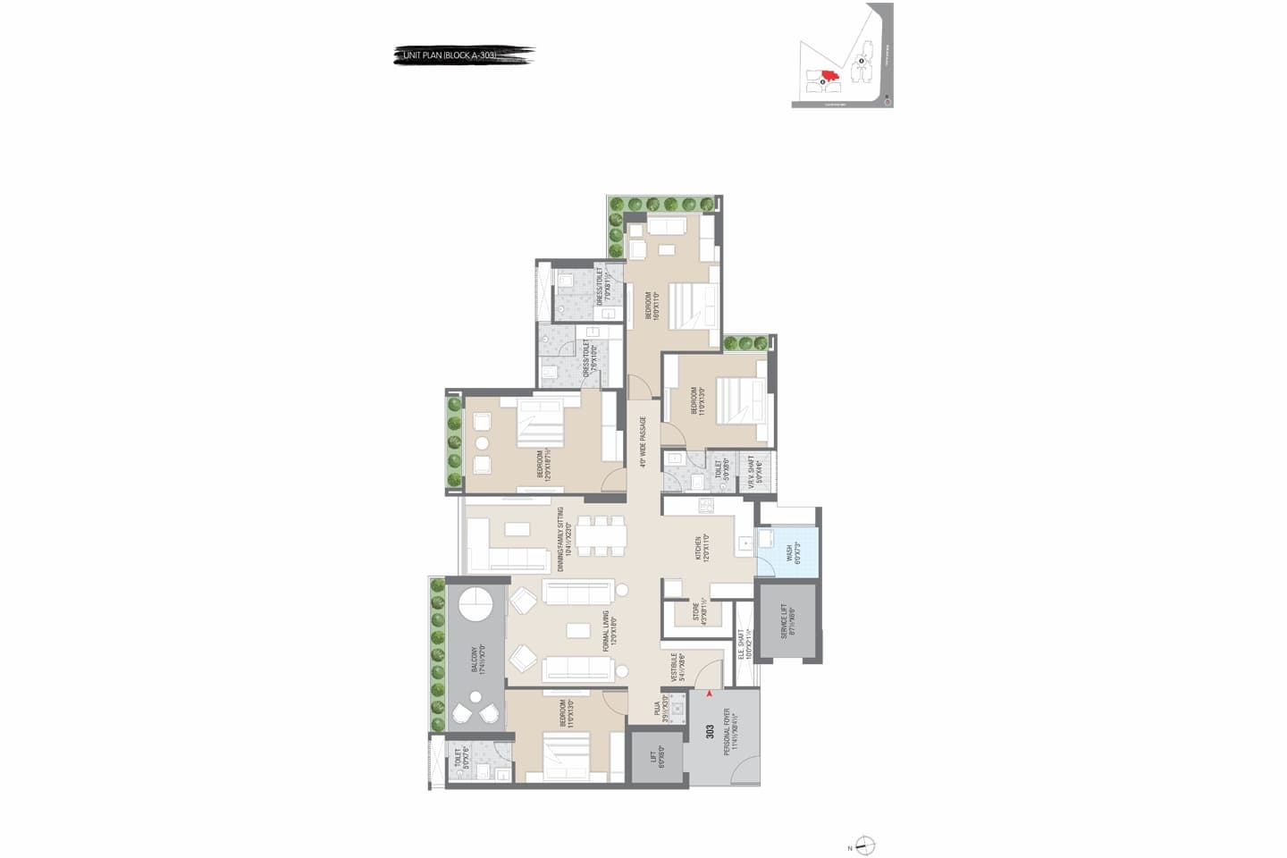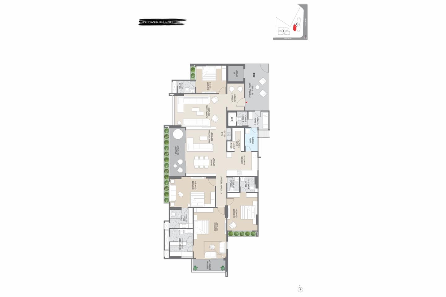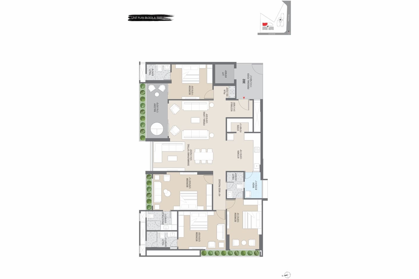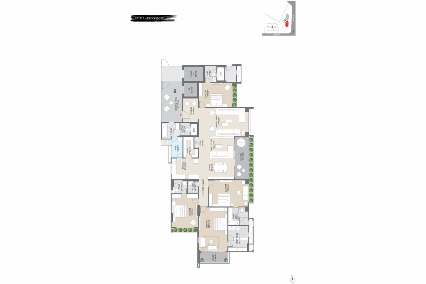 - Premium Quality Vitrified Tiles flooring in all Bedrooms & Common Area